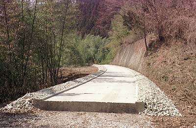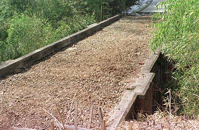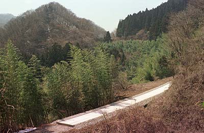 生い茂った草木が取り払われて、軌道面をコンクリートで固めています。