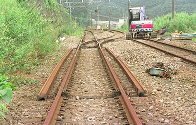 ポイントの設置により、横川から軽井沢への下り線は、一部レールが撤去され、