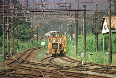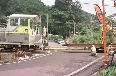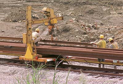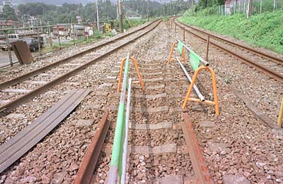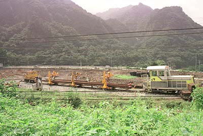 「横川鉄道文化むら」への、レールの敷設作業が始まりました。