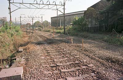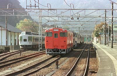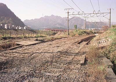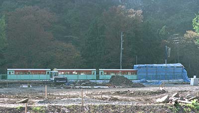 横川駅構内は先に到着した車両といっしょに、ところ狭しとひしめいています。