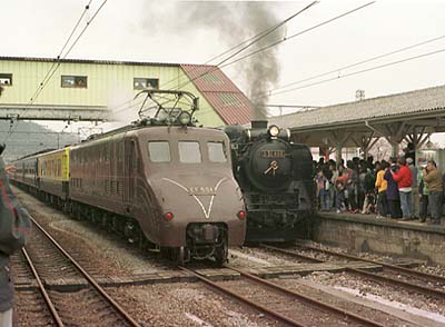 「EF55碓氷号」の後尾にはEF81 133号機(赤・北斗星色)が連結され、
