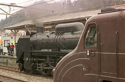 「EL&SL碓氷号」の入れ替えはEF64 1001号機(茶色・白帯)が行いました。
