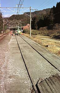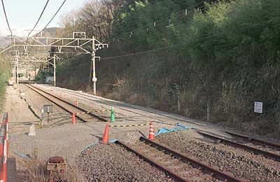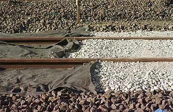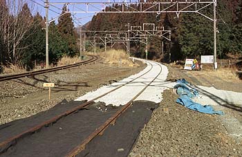 軽井沢−>横川の上り線に砂利を敷き詰めています。(アスファルトではありません。)