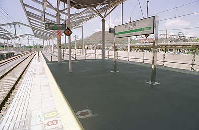 JR軽井沢駅の1・2・4番ホームには、2階建てのMaxの乗車口の