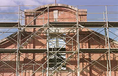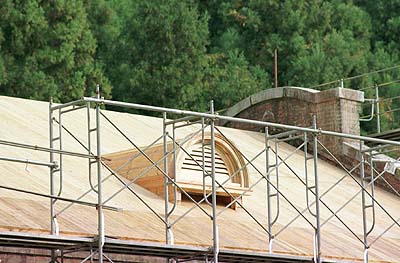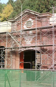 丸山変電所の修復も、屋根の葺き替え、レンガの補修と、いちだんと進んでいます。