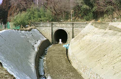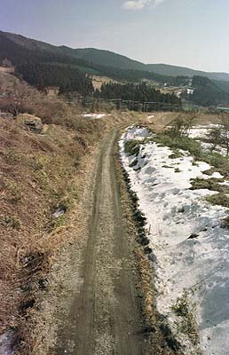 整備中の第一隧道付近 1998/2/14 まだ未整備の軌道跡 向こう側に信越本線の架線 1998/2/14
