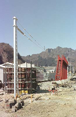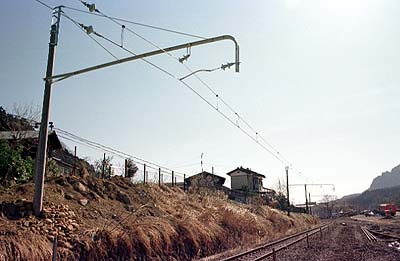 新設された架線 郵便局前の踏切 1999/3/6 新設された架線 横川駅 1999/3/6 新設された架線 横川駅 1999/3/6
