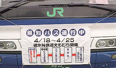 4月18日から25日の間、碓氷峠鉄道文化むらの開業に合わせて、横川駅から めがね橋(アプト式の第三橋梁)までJRバス関東・小諸支店が臨時バスを運行しました。 鉄道で訪れた方には、便利だったようです。定期運行されるといいですね。